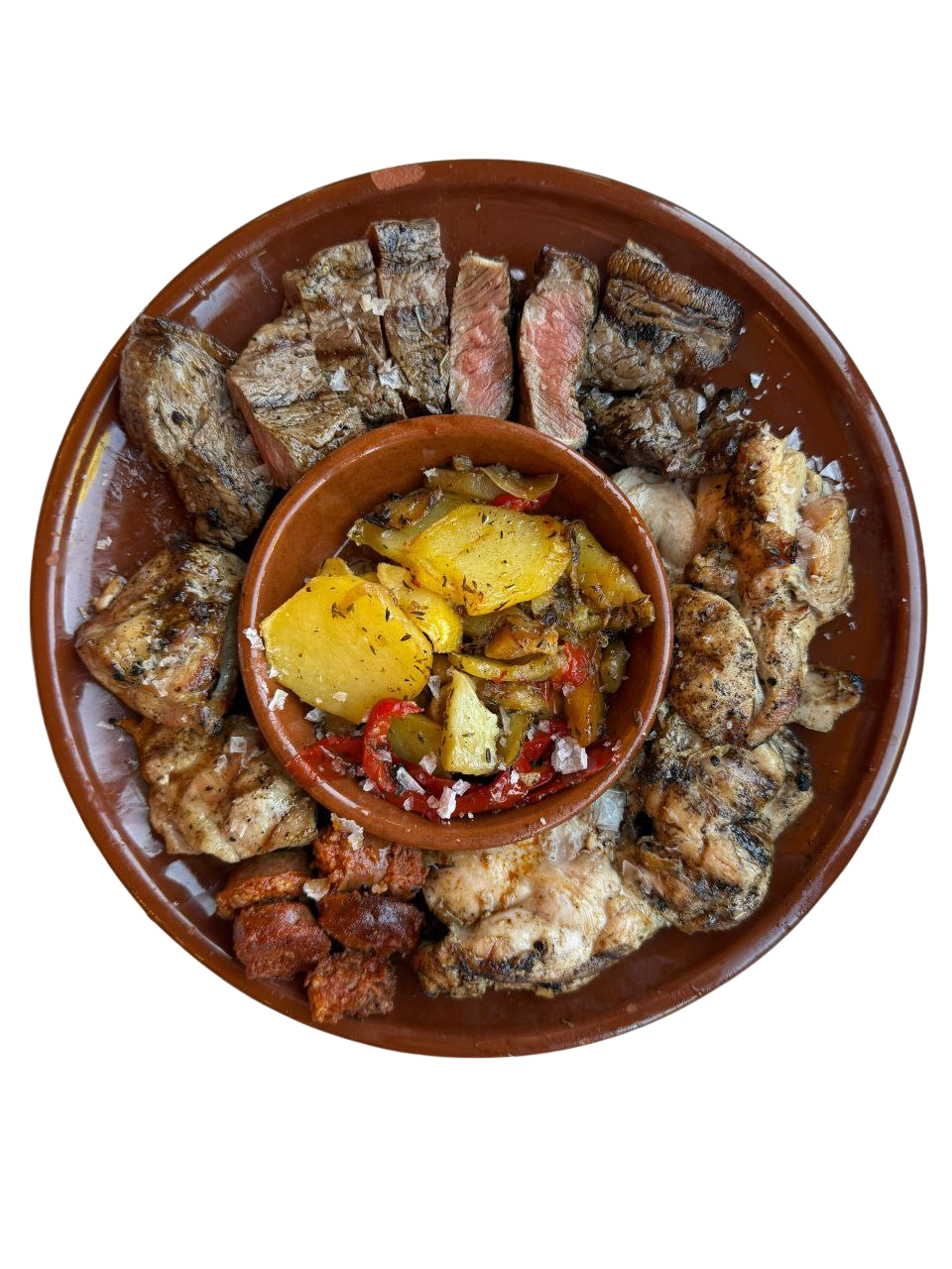 (A partir de 12 años o cualquier edad si comen menú hacienda) Hazlo premium añadiendo carnes o pescado a la plancha por 5€ Extra por persona en mesa. Premium: entrantes + pescaíto +carne por persona en mesa 29.90€
